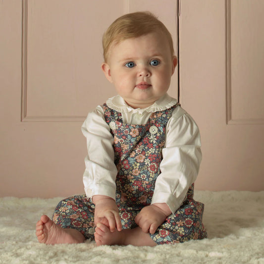 Rachel Riley Red Petal Damask Drop Hem Dress