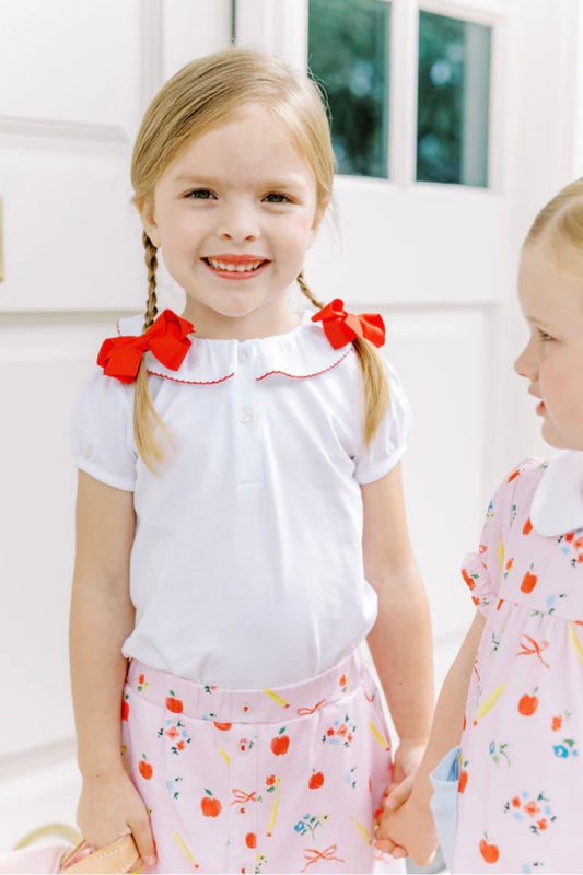 The Proper Peony Short Sleeve Top w/Red trim
