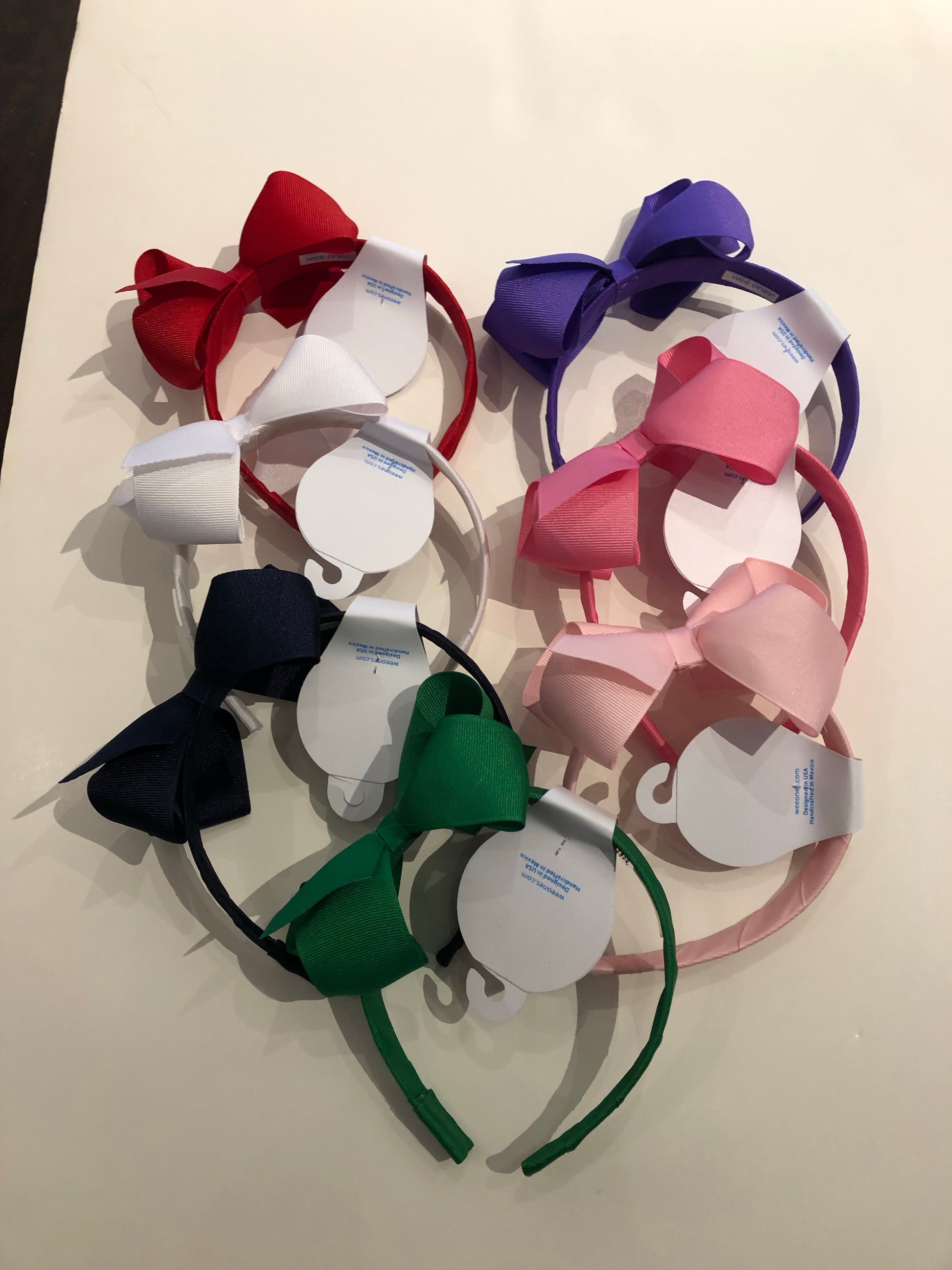 The perfect accessory for any outfit! Solid grosgrain headband with bow attached.