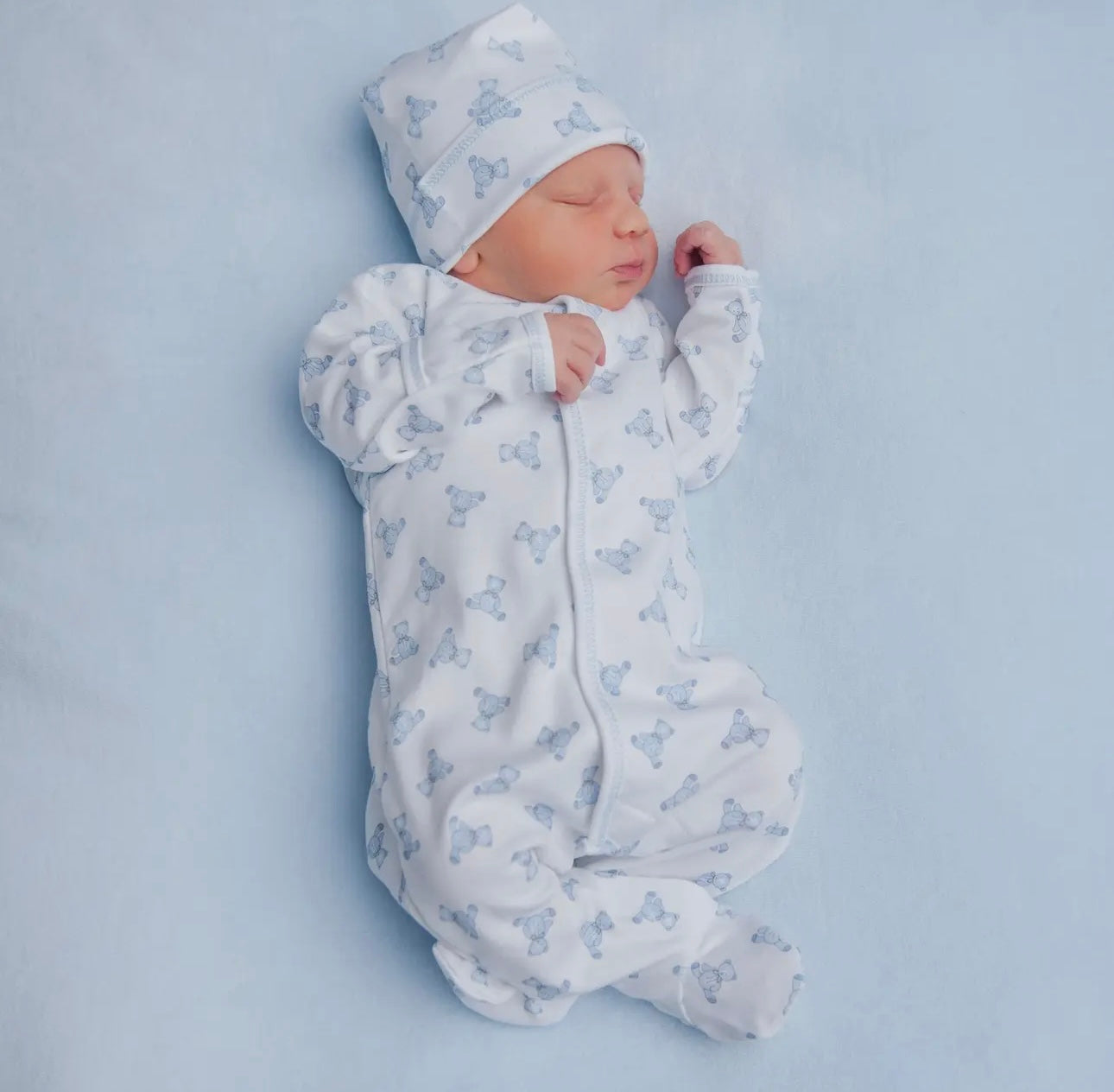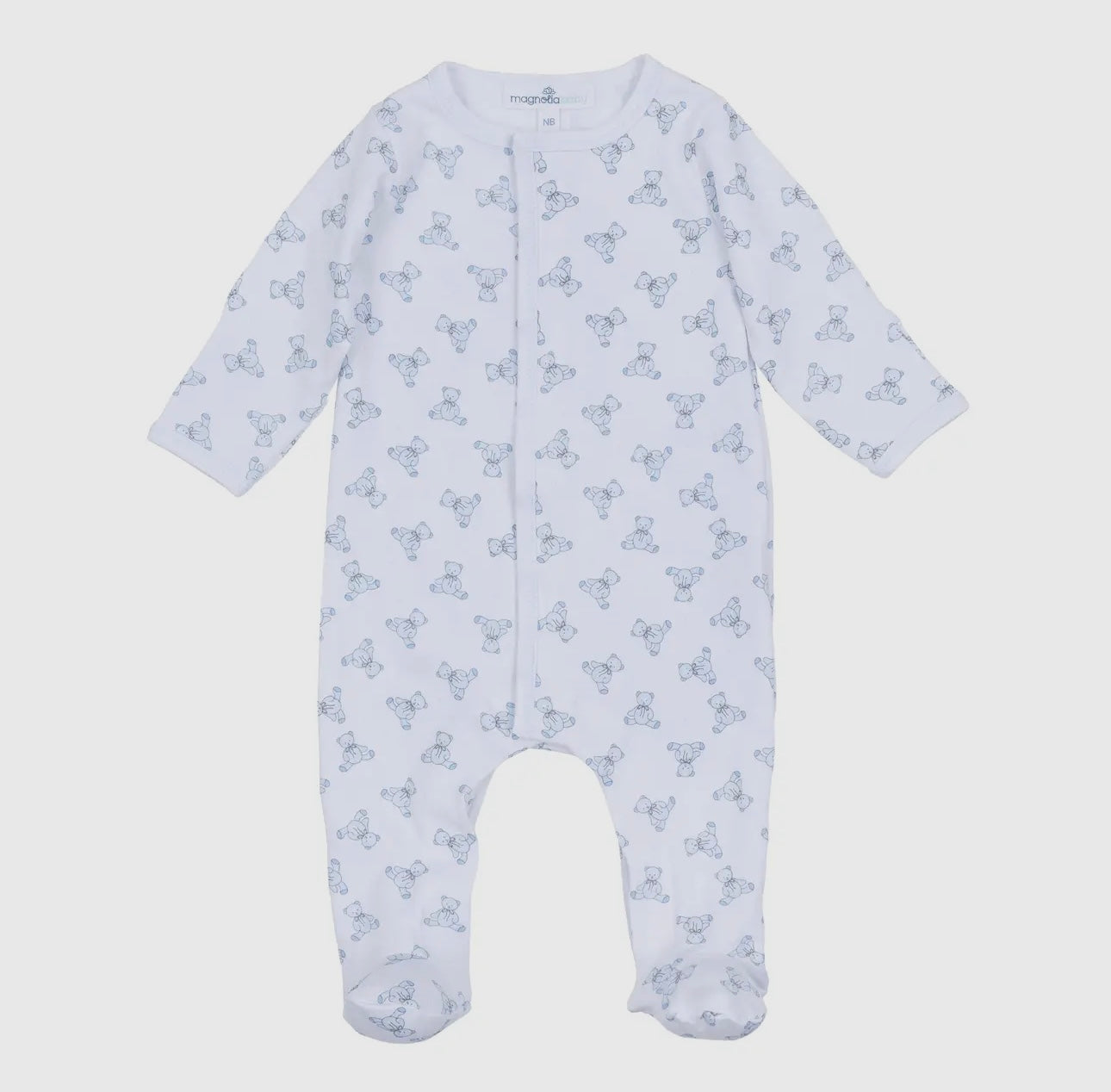 Complete your baby's layette with the adorable Baby's Teddy Footie in Blue. Made with soft, high-quality fabric, these footies are essential for your baby's comfort and style.