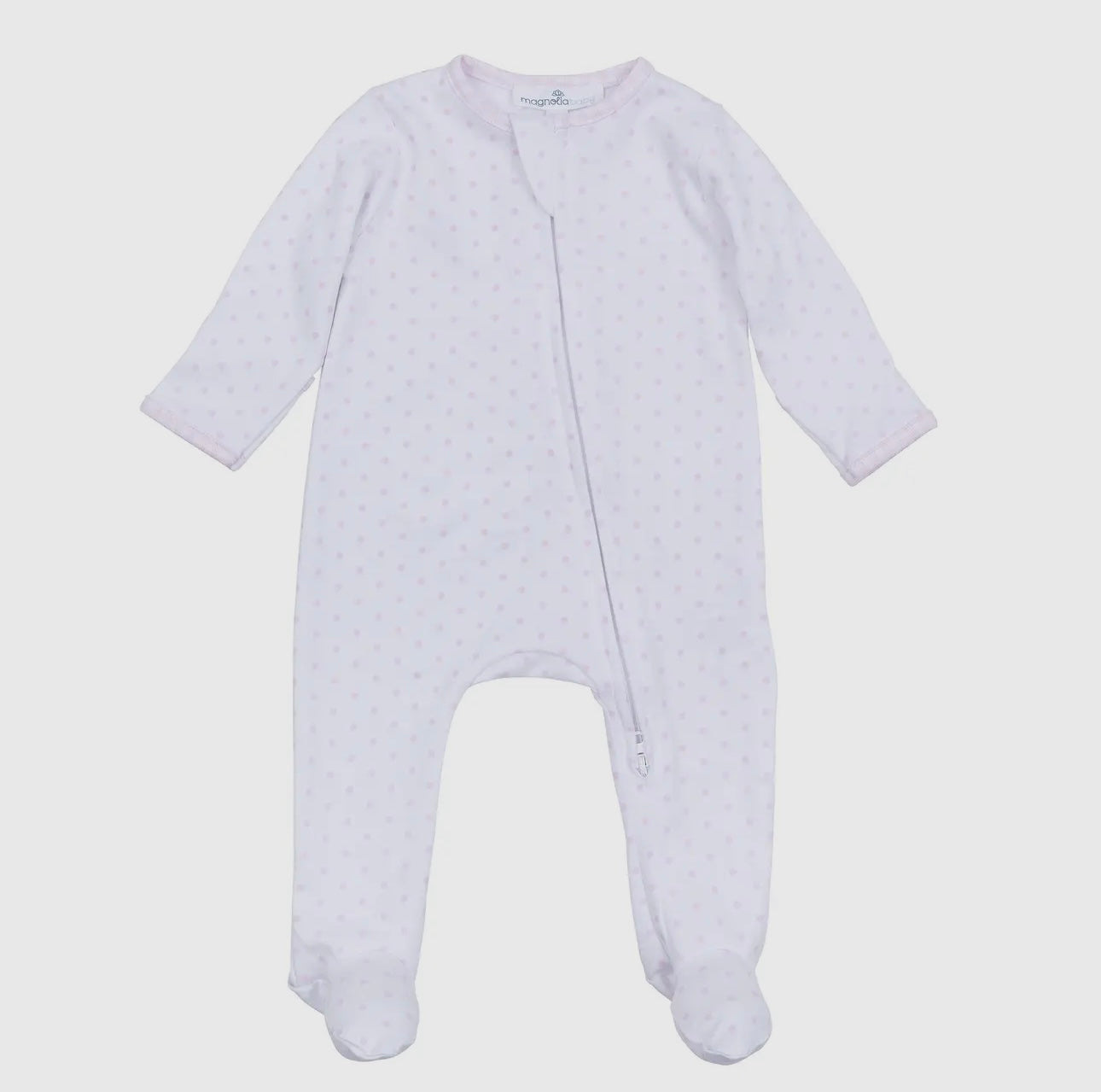 Magnolia Baby Gingham Dot Zipper Footie- Pink