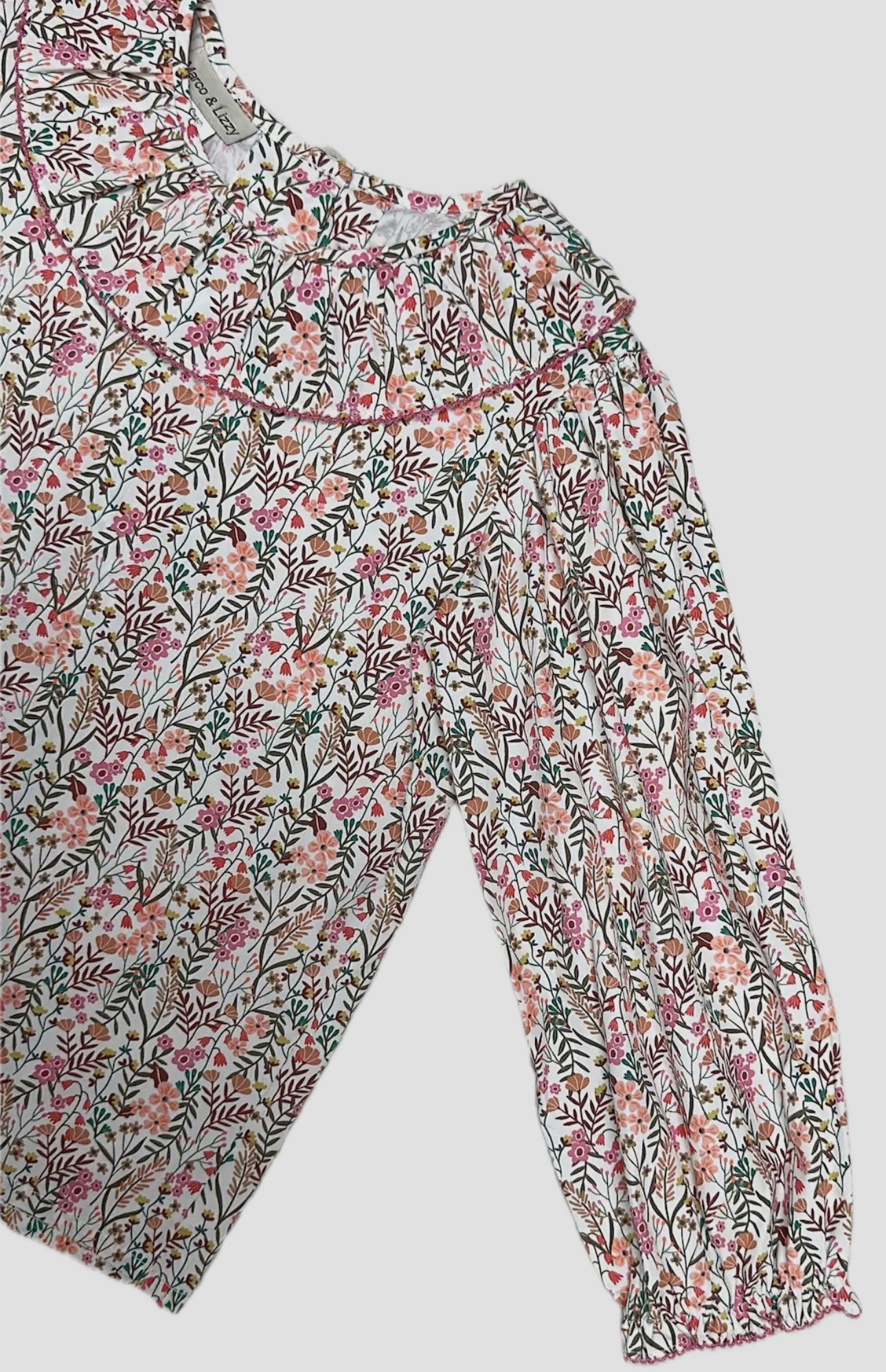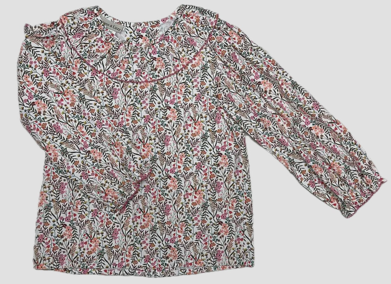 Cotton floral blouse with ruffle collar- pairs back with hot pink skirt for an adorable outfit!
