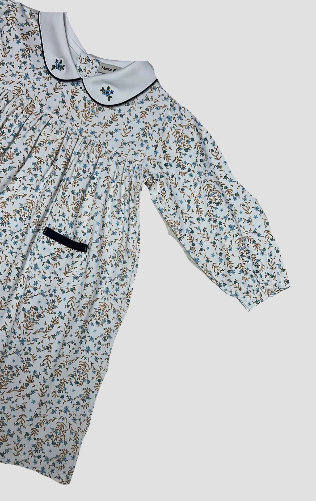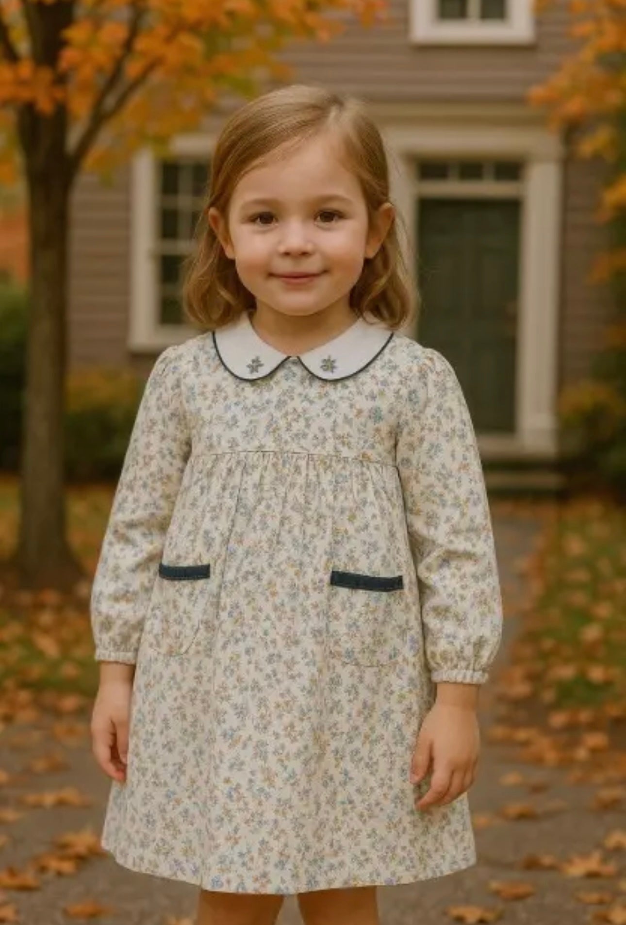 Beautiful blue floral float style dress for Fall- perfect for family photos!