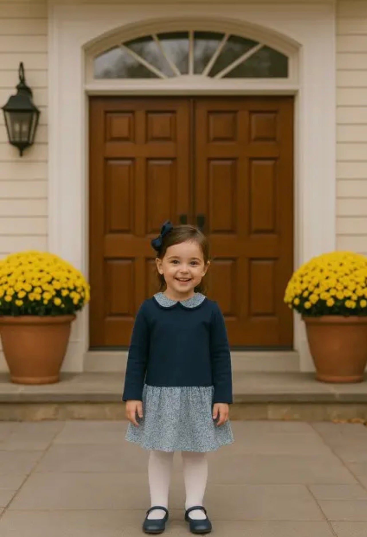 London Collection Drop waist dress. Cotton vielle and ultrasoft corduroy. Made in El Salvador