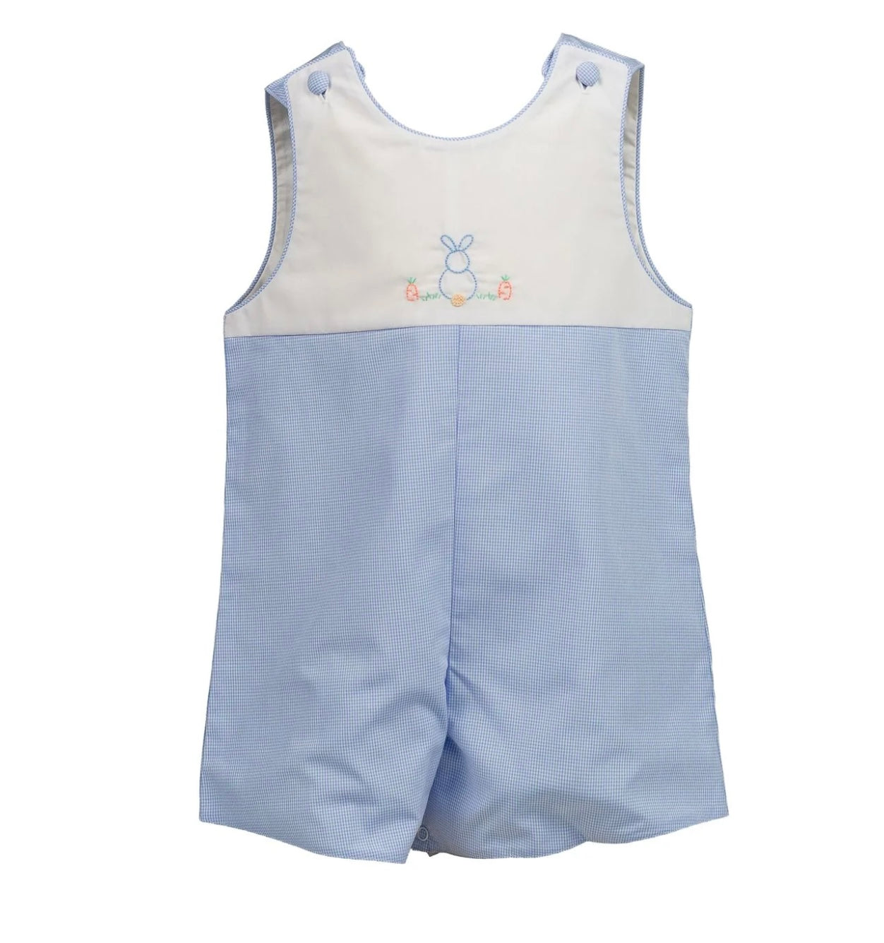 Be dressed and ready for the Easter season in our Clover Bunny collection! Soft blue and white with hand-embroidered bunny makes for the sweetest styles.