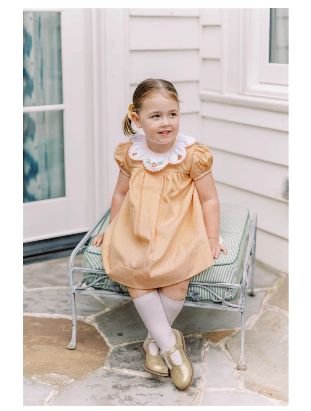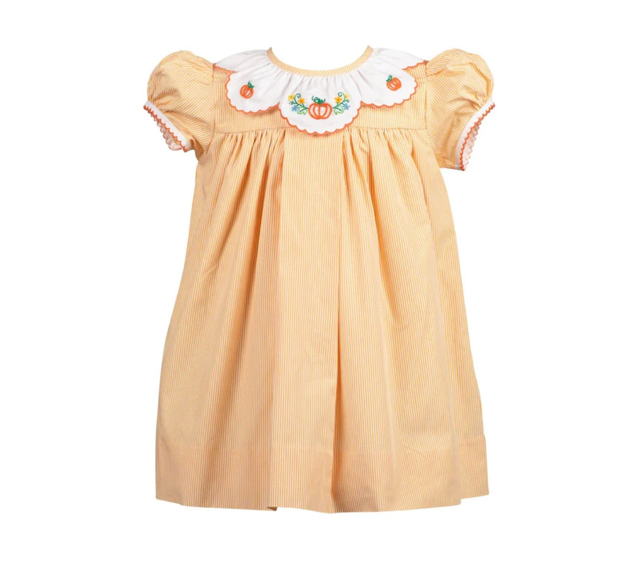 Whether you are headed to the pumpkin patch or Thanksgiving dinner, your child will be delightfully dressed in our Pembroke Pumpkin collection. The hand embroidered pumpkin detail makes it a timeless piece!