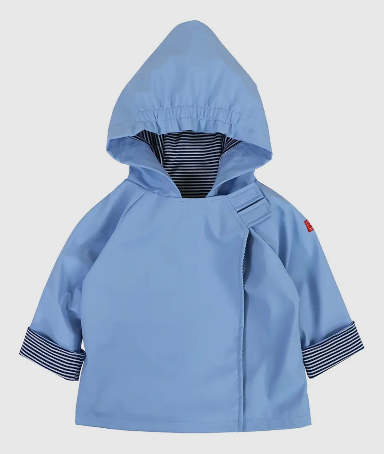 We took the unique design of our popular hook and loop closure jacket and made it into a Raincoat. Hooded with elastic Hook and Loop Closure Machine Wash Shell: 100% Polyurethane Lining: 100% Polyester